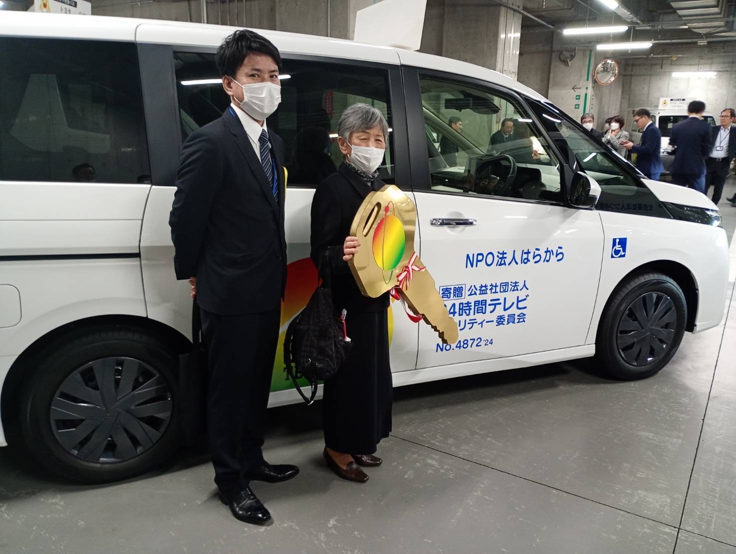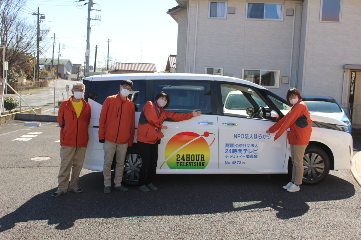そして、いつもの風景に包まれながら令和6年度も終ろうとしていた頃に、はらからに大きなプレゼントが届きました。2月26日(大安)、「24時間テレビ」に送られた全国の皆様の義援金による福祉車両(セレナ)が寄贈されたのです。開所以来、こんなに大きな寄附をいただくというのが初めてだったので、とても嬉しくもあり、戸惑いもありました。けれど、車椅子ごと乗車できると聞き、車椅子を利用している仲間も安全に一緒に外出できるというところが気に入りました。それに新車です。