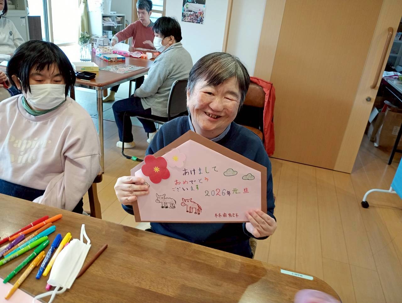 それぞれに朝食が終わり、与薬、歯磨き、着替は、朝食前の方もいらっしゃれば、日中活動へ行く前の方もいらっしゃいます。一連の朝の支援が落ち着くと、夜勤の職員は記録をまとめて、その内容を日中活動へスマホで送ります。早番の職員は、利用者さん一人一人のタイミングで排便支援を行います。コートを着てリュックをしょって、帽子をかぶり、日中活動の職員が迎えに来て、玄関のチャイムが、ピンポンと鳴ると、さあ一日の始まりです。朝日を浴びながら「行ってきます」「行ってらっしゃい」と言葉が飛び交います。夜勤職員と早番の職員の頭の中は、「あー今日も落ち着いてスタート出来た」とほっとします。特別のことがないいつもの風景に感謝するひと時です。